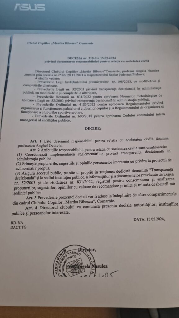 • Transparență decizională